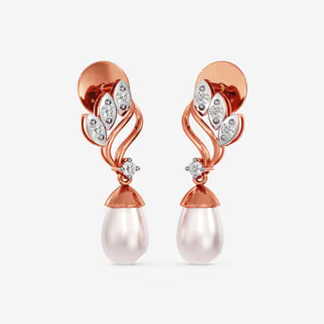 Leafy Pearl Drop Diamond Earrings