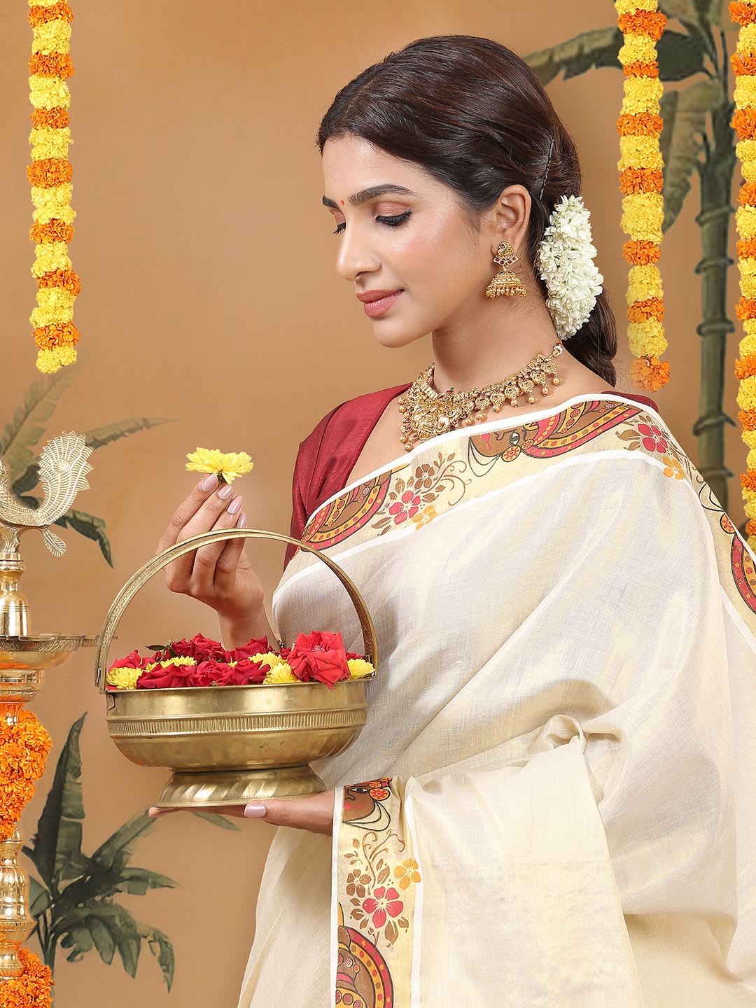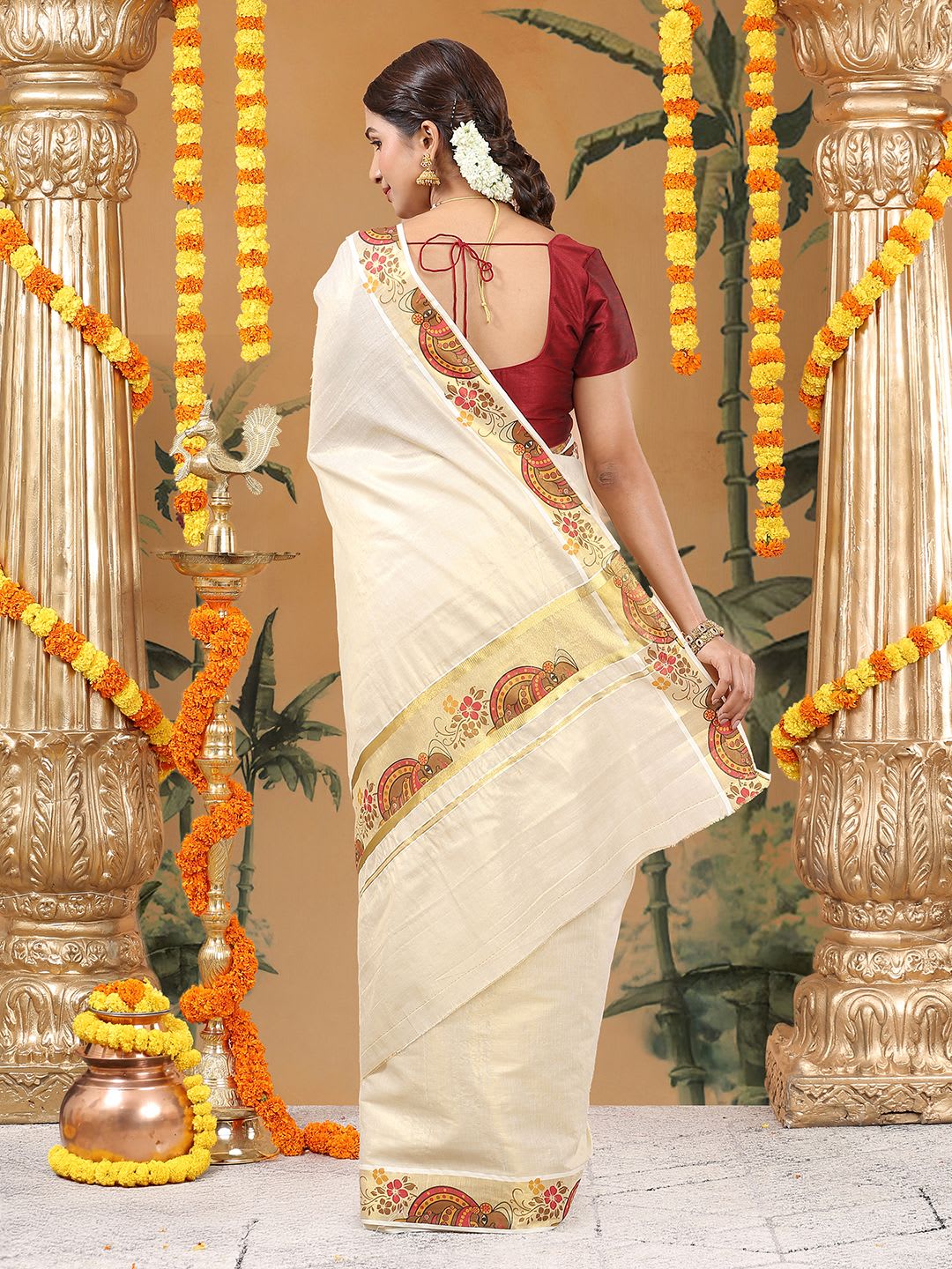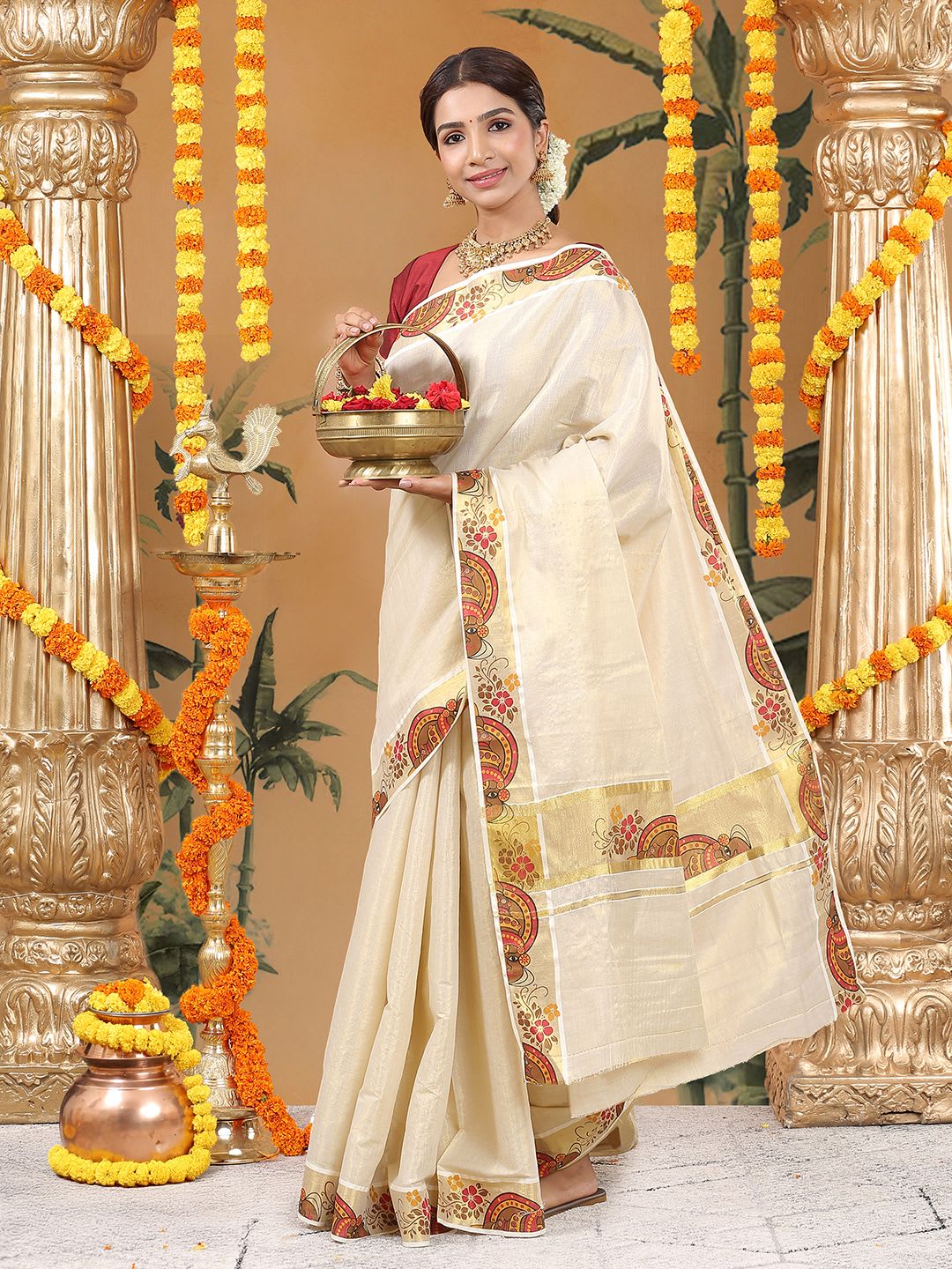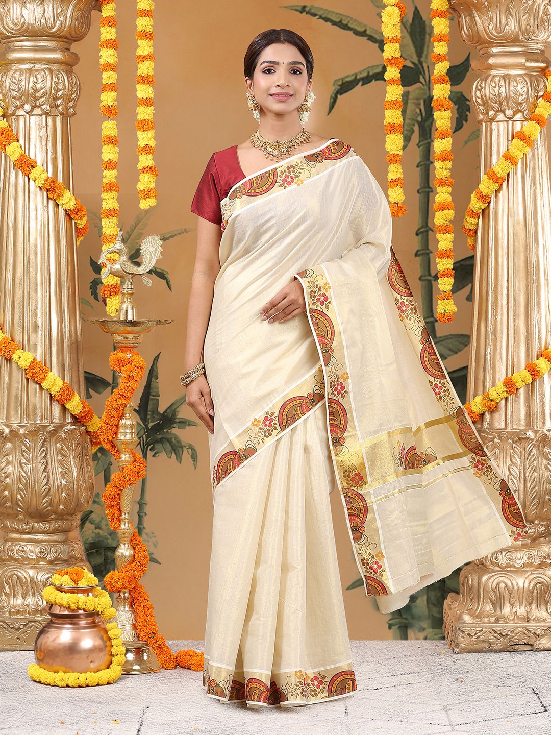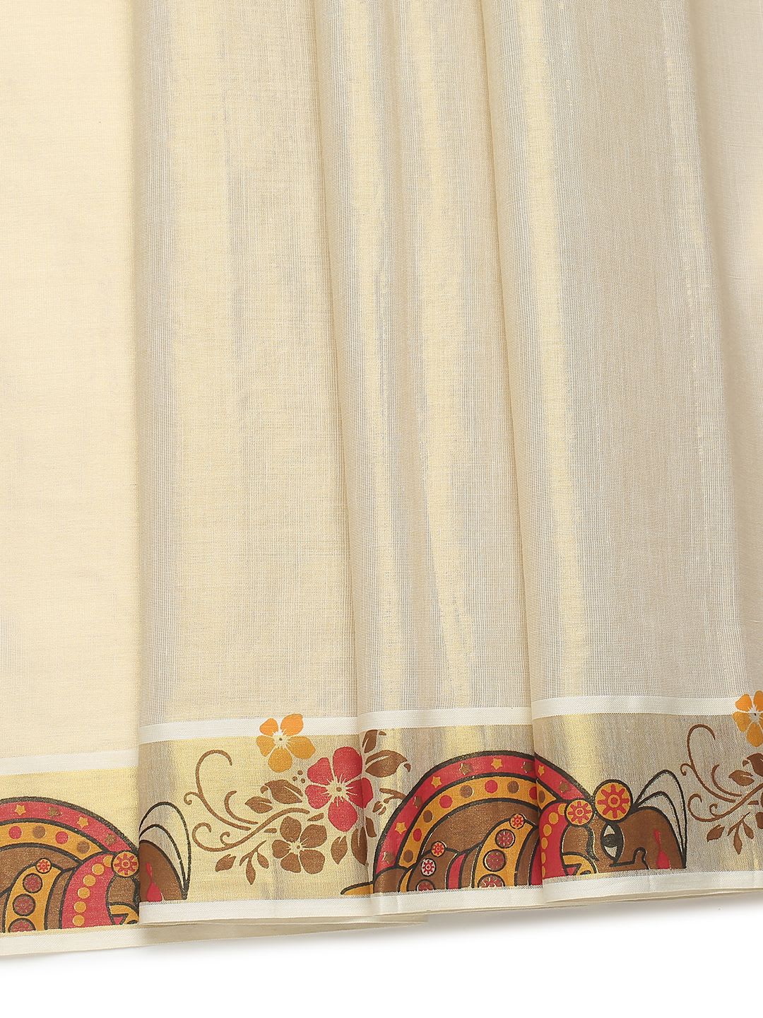 Size & Fit Length: 5.5 metres plus 0.8 metre blouse piece Width: 1.06 metres (approx.) Material & Care Dry Clean Specifications Ornamentation Plain Border printed Blouse Fabric Tissue Blouse Blouse Piece Saree Fabric Tissue Wash Care Dry Clean