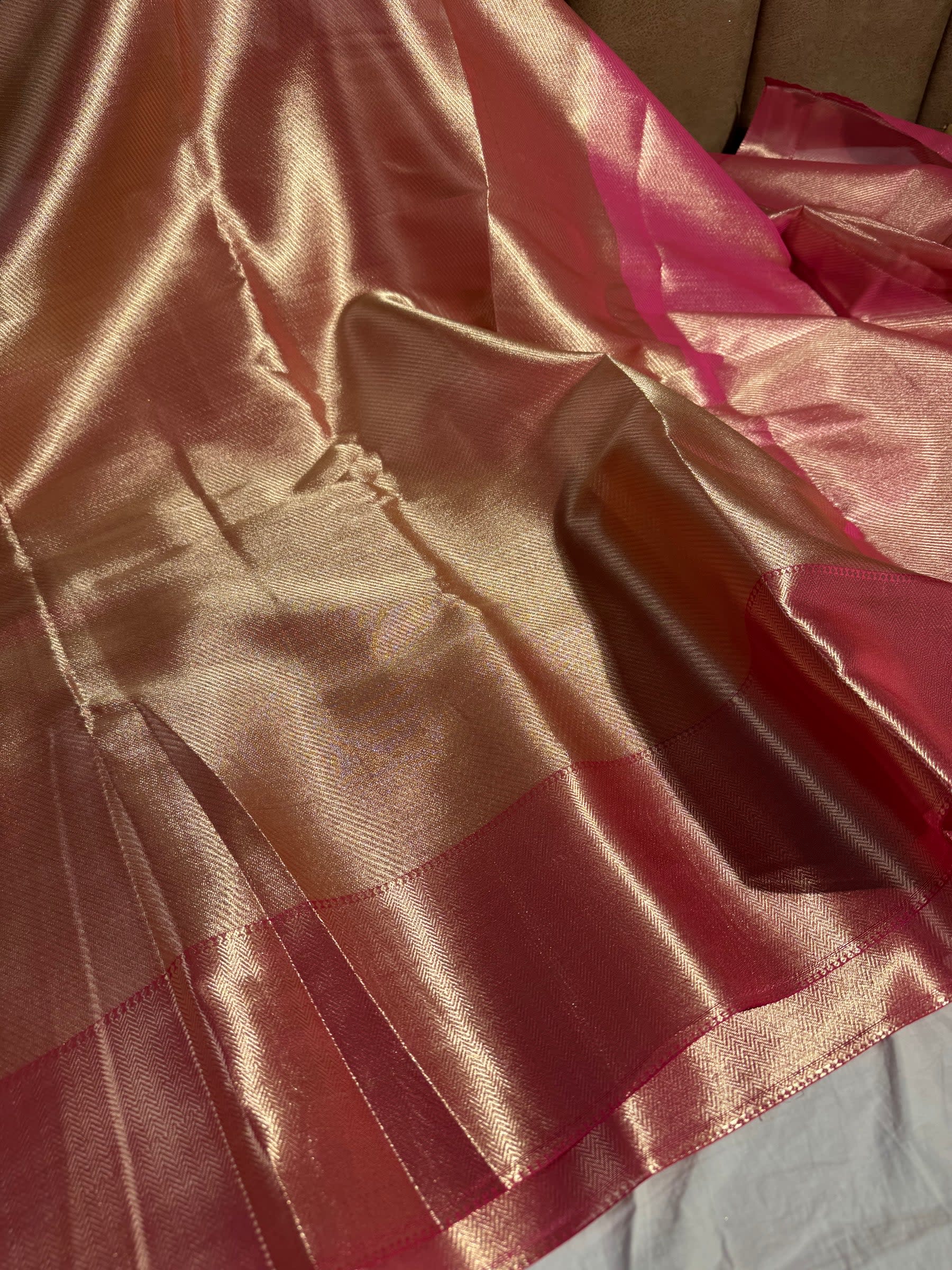 Step into royal splendour with our exclusive Softsilk Jacquard Banarasi saree that marries heirloom brocade artistry with a smooth, soft-silk weave. Intricate jacquard motifs and subtle zari highlights catch the light as you move, creating a luminous drape that flatters every silhouette. Perfect for weddings, festive celebrations or formal gatherings, this show-stopping piece brings timeless Banarasi craftsmanship to the modern wardrobe.