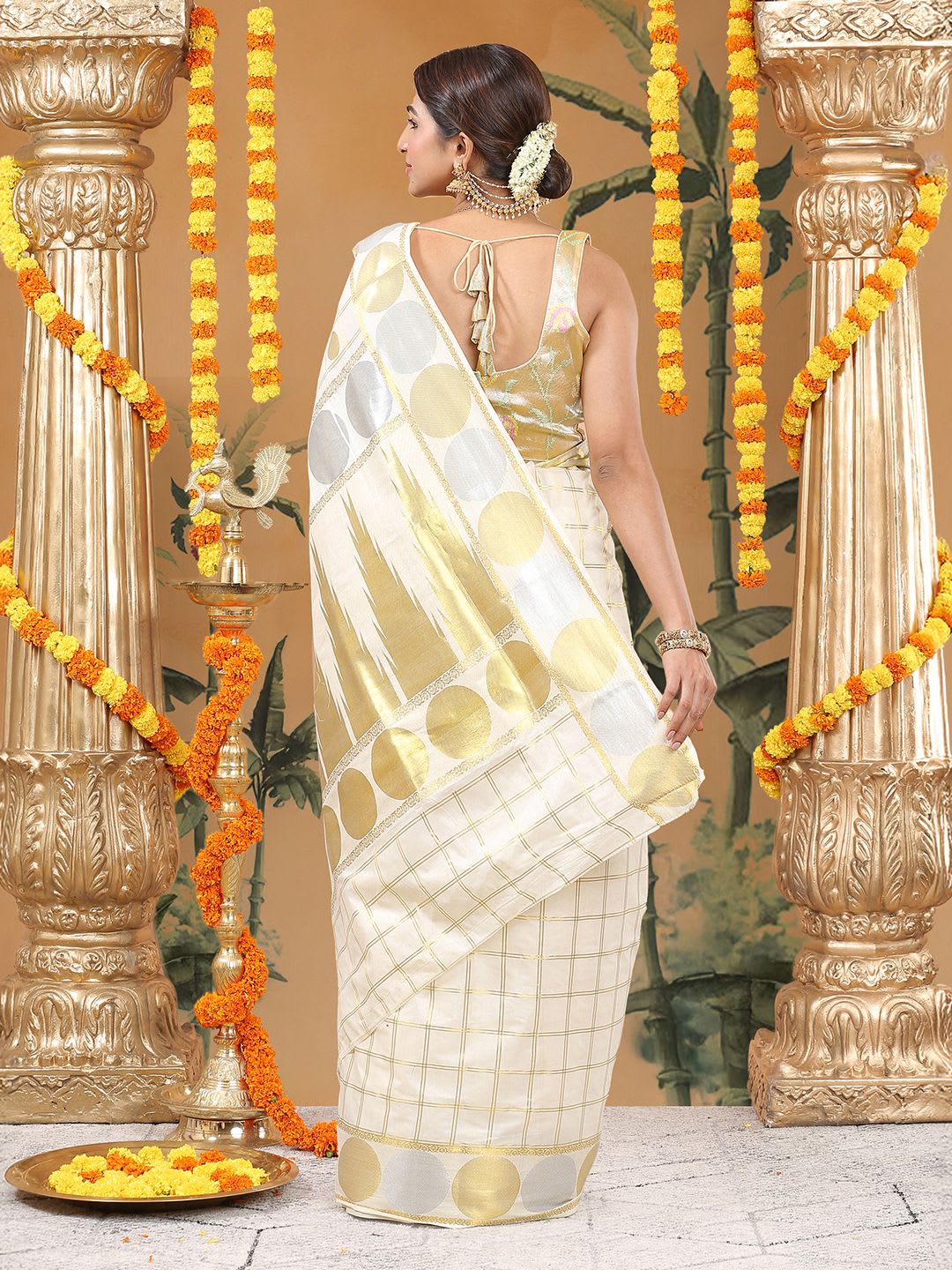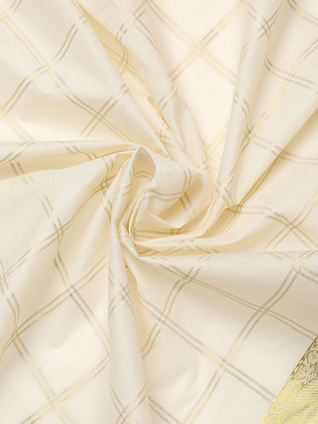 Size & Fit Length: 5.5 metres plus 0.8 metre blouse piece Width: 1.06 metres (approx.) Material & Care Dry Clean Specifications Ornamentation Checks & Polka Border Woven Design Blouse Fabric Cotton Blouse Blouse Piece Saree Fabric Cotton Wash Care Dry Clean