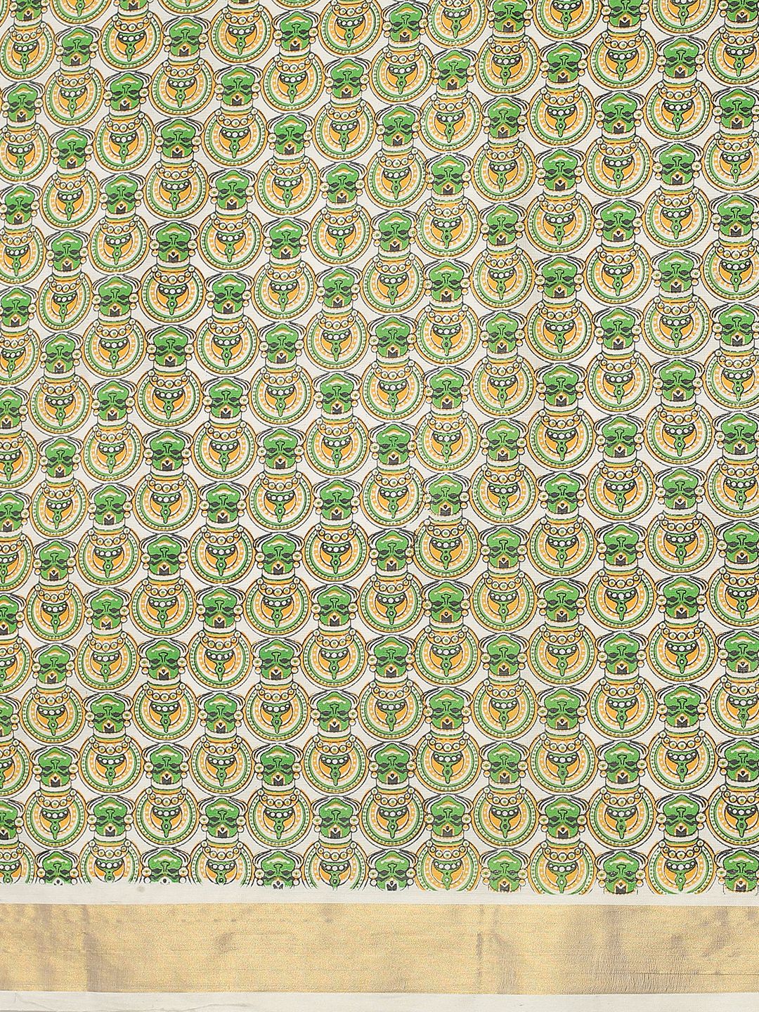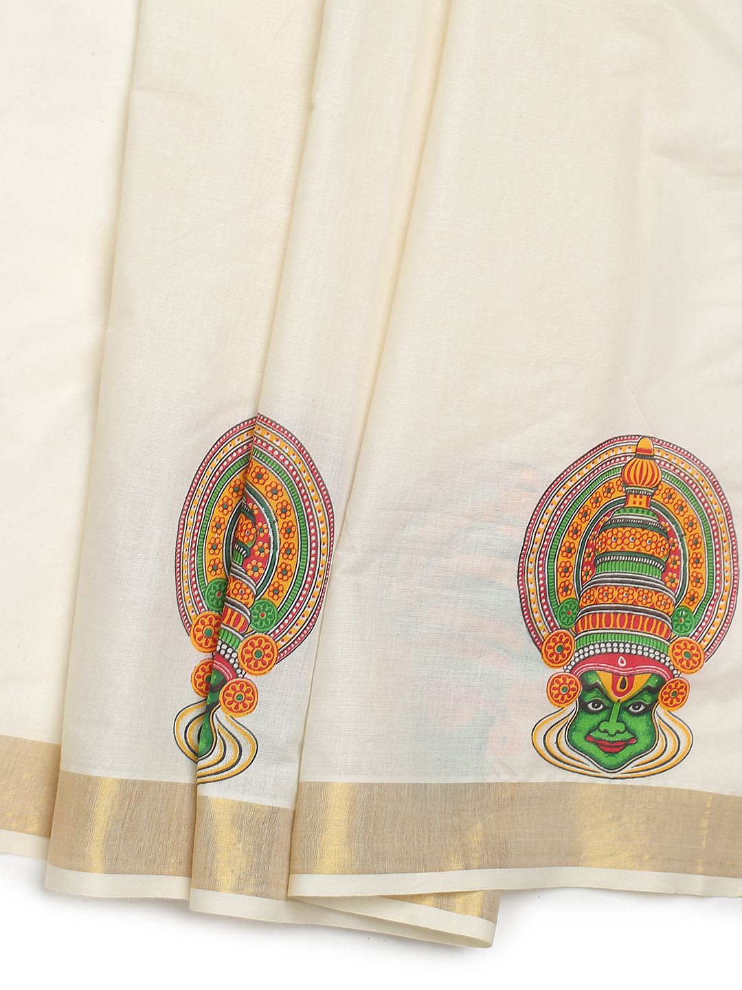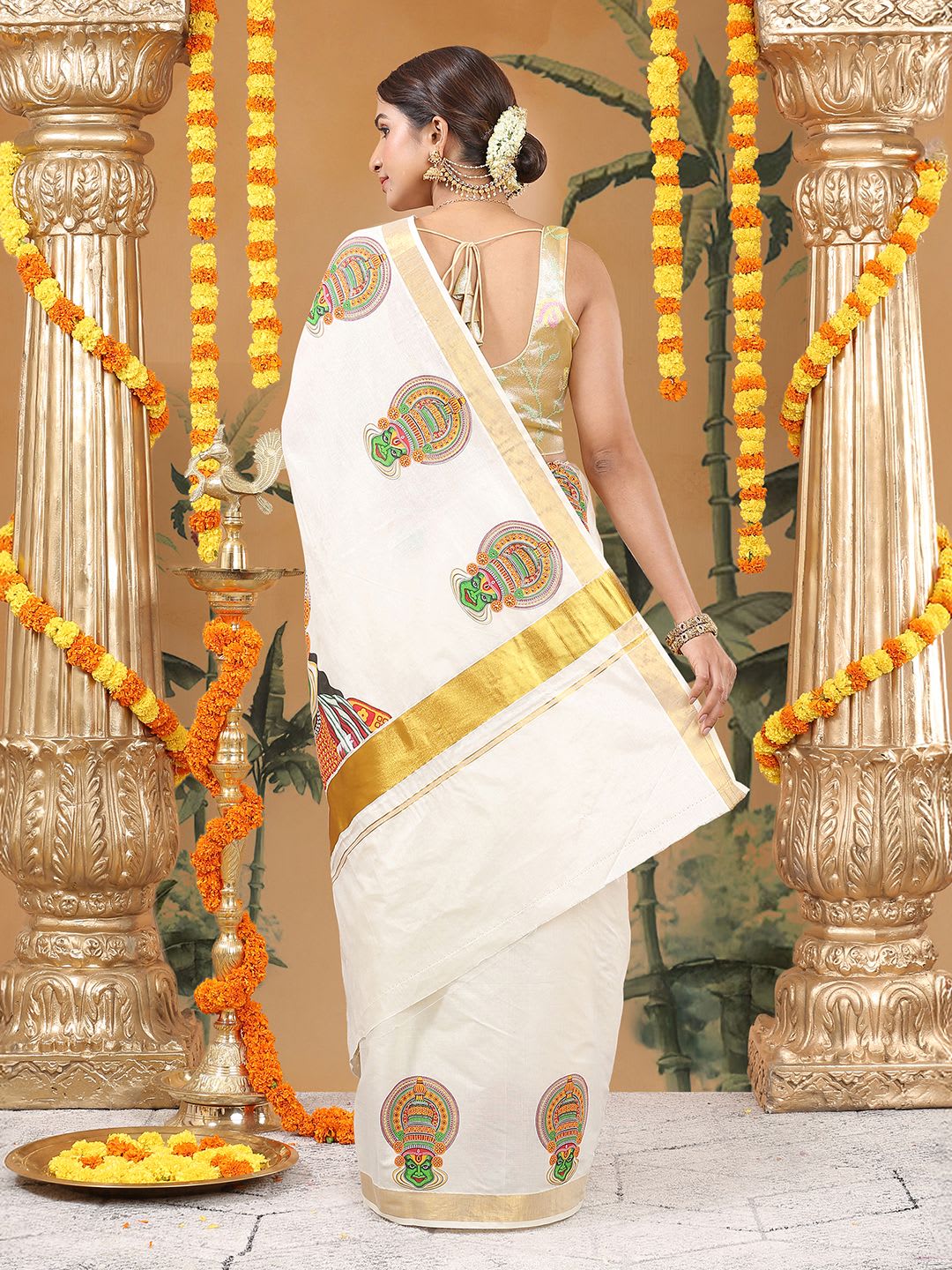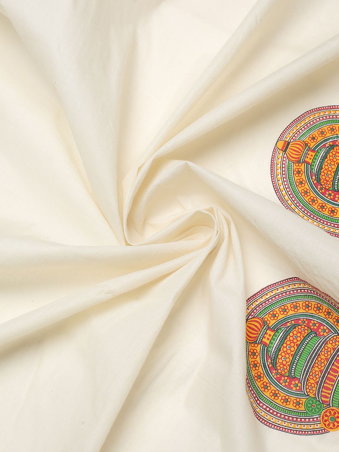 Size & Fit Length: 5.5 metres plus 0.8 metre blouse piece Width: 1.06 metres (approx.) Material & Care Dry Clean Specifications Ornamentation Printed Border Woven Design Blouse Fabric Cotton Blouse Blouse Piece Saree Fabric Cotton Wash Care Dry Clean