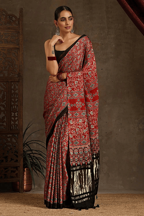 Color: Rich red with traditional Ajrakh motifs