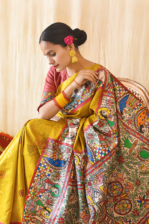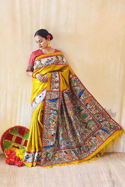 Madhubani Paints Handpainted Madhubani KOHBAR SWAYAMBAR Tussar Silk Saree