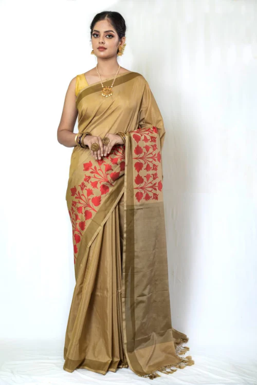 Celebrate the artistry of Banaras weaving with the Tassar Handloom Banarasi Pure Silk/Cotton Kadwa Skurt Saree. Crafted with a harmonious blend of pure Tassar silk and cotton, this saree balances sheen and breathability, making it perfect for both grand occasions and long-hour comfort.