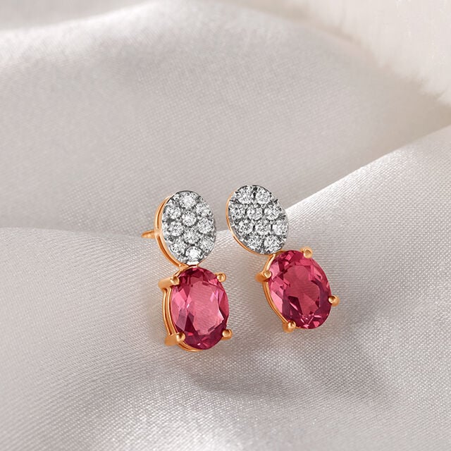 Celebrate your love and companionship with these beautiful stud earrings, featuring a charming union of pink colour stone and diamonds