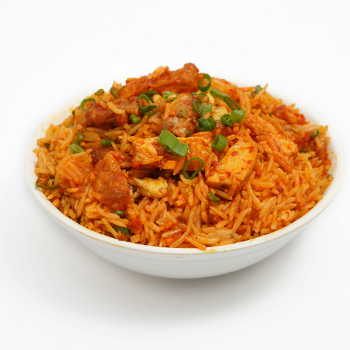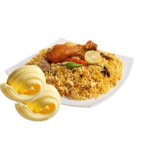 A rich and indulgent biryani featuring tender chicken cooked in creamy butter chicken gravy, mingled with aromatic rice.