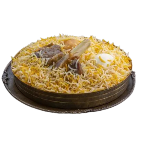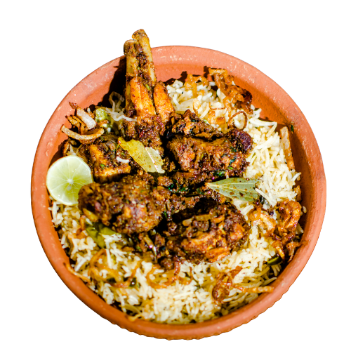 A unique Bengali-style biryani with tender mutton, potatoes, and lightly spiced basmati rice, scented with saffron and rose water.
