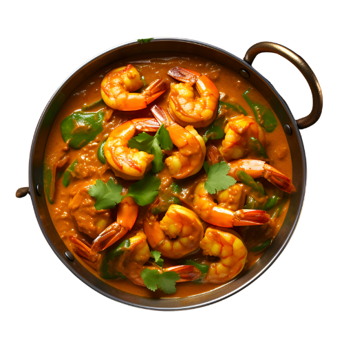 Juicy prawns are sautéed and then simmered in a delicate curry of coconut milk, onions, ginger, and green chilies, finished with a hint of garam masala. This mild, creamy, and aromatic dish pairs beautifully with steamed rice.