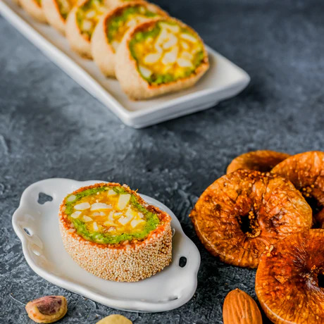 Experience the goodness of Anjeera Chakra, a delightful blend of anjeer, almonds, cashews, and pista. Infused with honey and elachi powder, this treat offers a perfect balance of sweetness and crunch.
